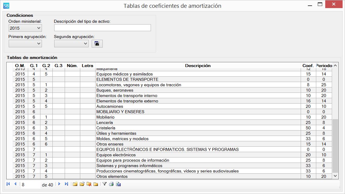 • Se incluyen las nuevas tablas de amortización publicadas en la Ley 27/2014 de 27 de noviembre, del Impuesto de Sociedades. Los nuevos coeficientes seran de uso obligado para los ejercicios contables iniciados a partir del 1 de enero de 2015.
