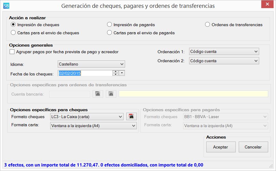 • El módulo de impresión de cheques y pagarés permite seleccionar la fecha de emisión de los mismos desde la misma pantalla de emisión