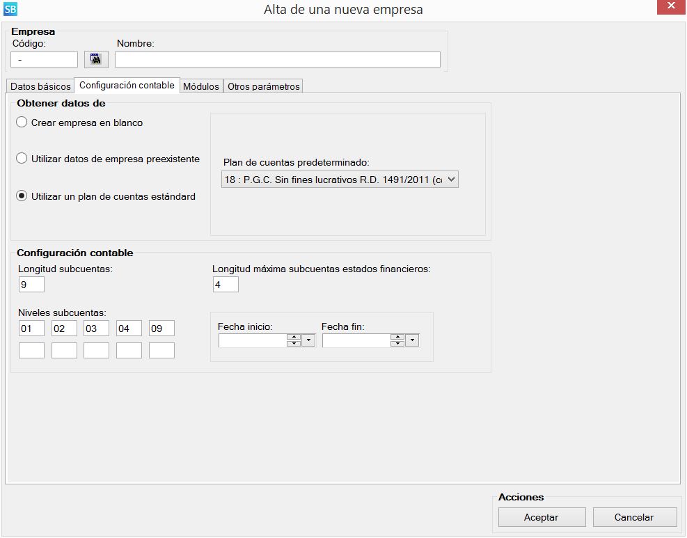 • Se incorpora el cuadro de cuentas de las entidades sin fines lucrativos en el módulo de alta de empresas.