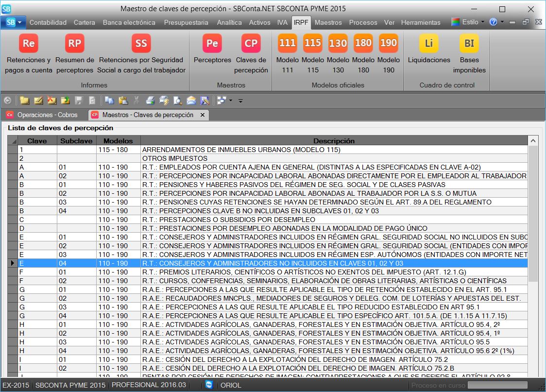 • La Orden HAP/2429/2015 de 10 de noviembre de 2015 incorpora múltiples cambios que afectan al modelo 190 de forma significativa. El alcance de los cambios es, a efectos de SBConta.NET, retroactivo dado que se deben ajustar las claves de percepción que figuran en el libro registro de retenciones practicadas durante el ejercicio 2015, así como otros aspectos del contenido del modelo.