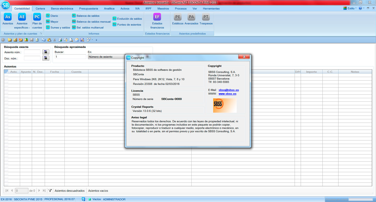• Se ha actualitzado la dirección y el teléfono de SBSS Consulting dentro del apartado 'Ayuda'-'Acerca de...'.
