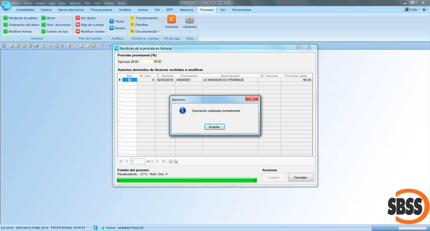 Nueva versión 2016.07 en la que se actualitza la dirección y el teléfono de SBSS y donde se incluye una nueva opción de recálculo de prorrata en facturas (03/03/2016)