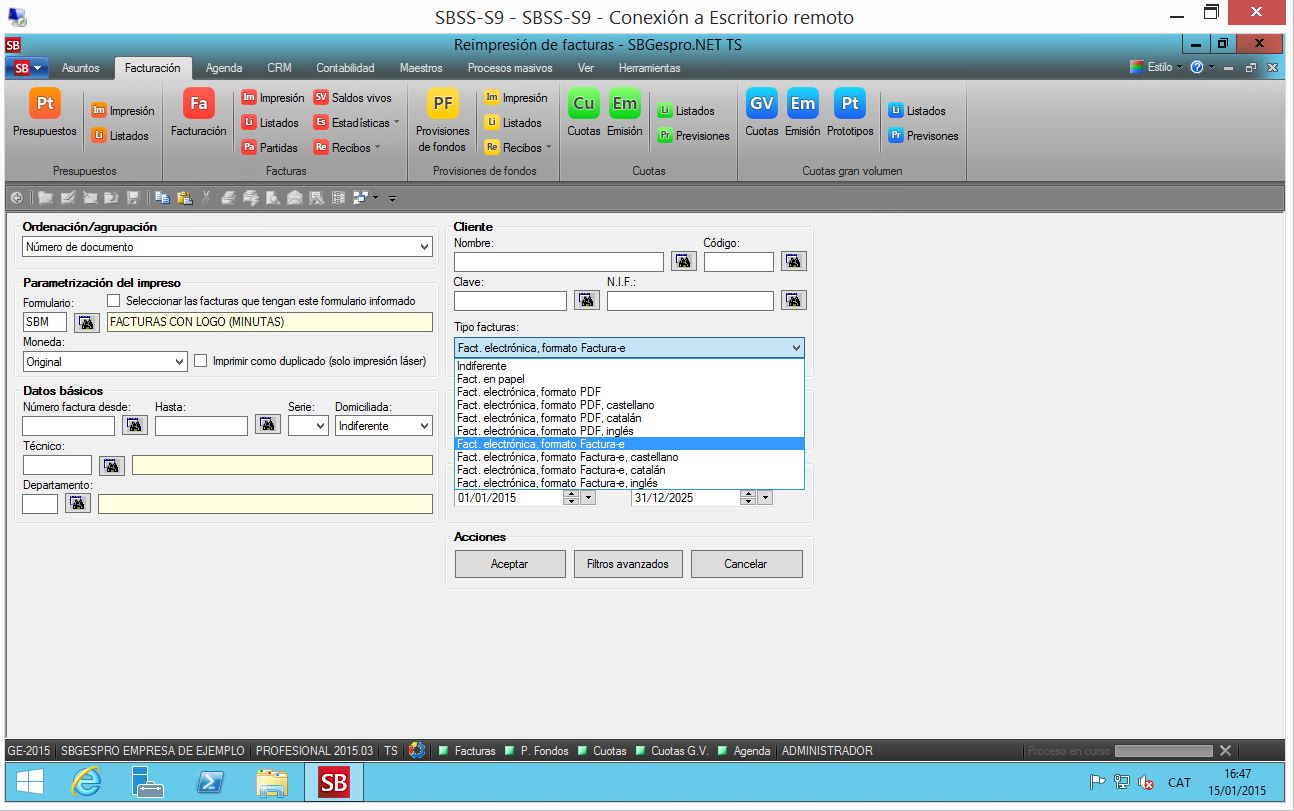 Nueva versión 2015.03 que incluye el nuevo formato de factura electrónica Factura-e para las administraciones públicas (15/01/2015)