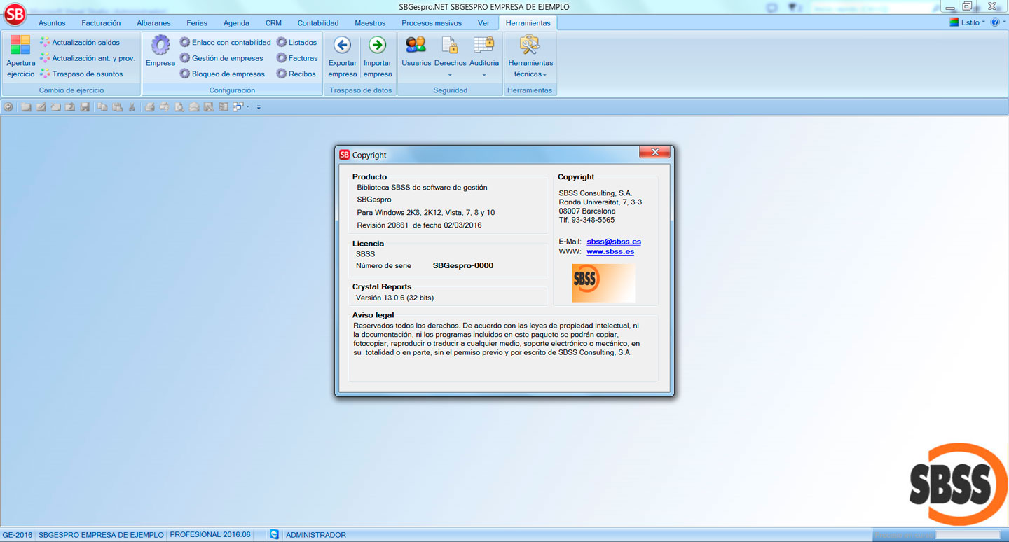 • Se ha actualitzado la dirección y el teléfono de SBSS Consulting dentro del apartado 'Ayuda'-'Acerca de...'.