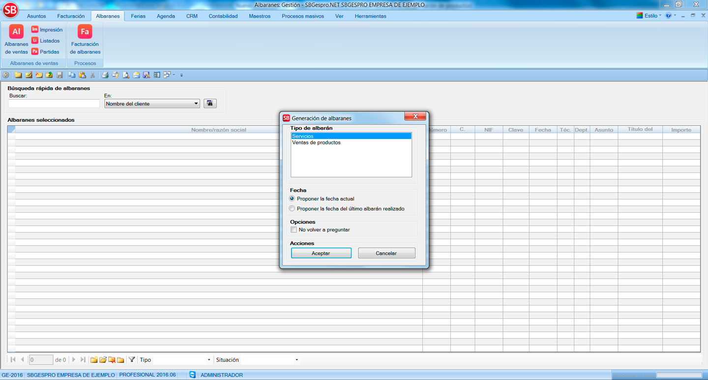 • A partir de ahora es posible indicar al programa si al dar de alta un albarán queremos que proponga la fecha actual o la fecha del último albarán generado.