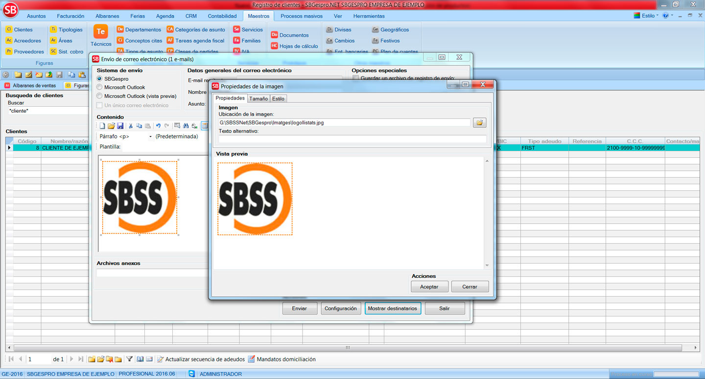 • Se ha rediseñado la opción de insertar imágenes en el formulario de mailing masivo, ya que en unas condiciones dadas se perdía la imagen en el momento de realizar el envío.