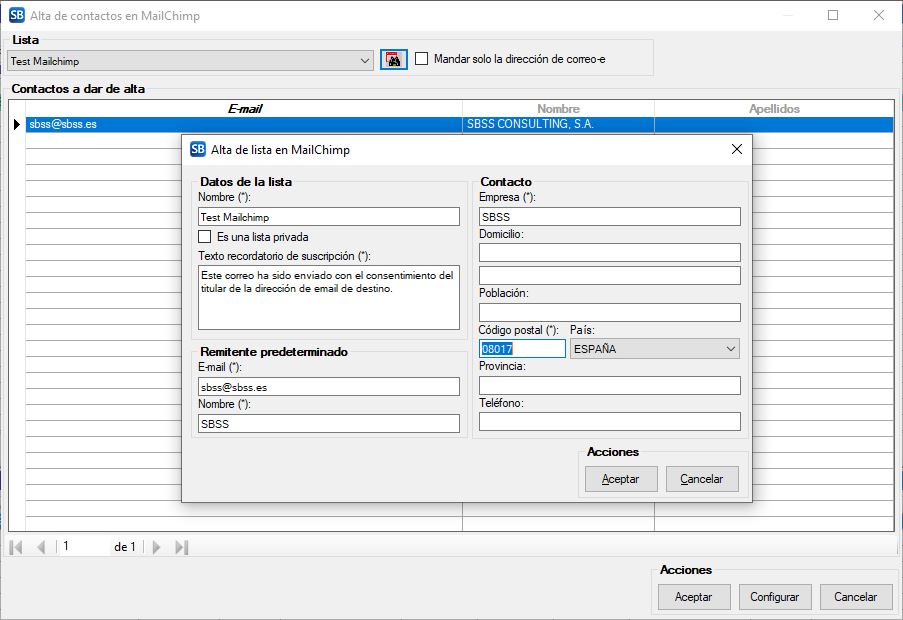 • Se modifica el módulo de sincronización con Mailchimp para adatarlo a los últimos cambios de su pasarela de enlace que provocaban errores al crear nuevas listas de distribución.