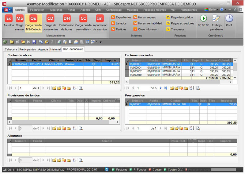 Utilización de prototipos de facturas, provisiones de fondos, presupuestos y asuntos con el ahorro de tiempo que se deriva.