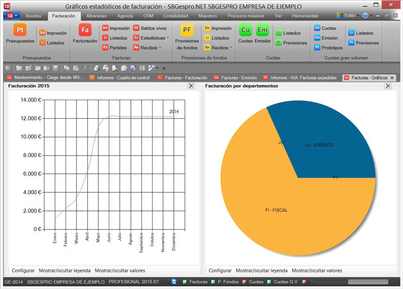 Facturación en varios formatos -minutas, ventas de productos, anticipos de honorarios, facturación por trabajos realizados y ventas de inmovilizado-.