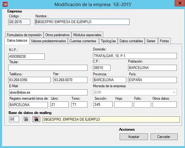 • Se amplía el módulo de configuración de la empresa a efectos de poder configurar los datos registrales de la empresa emisora de la factura.
